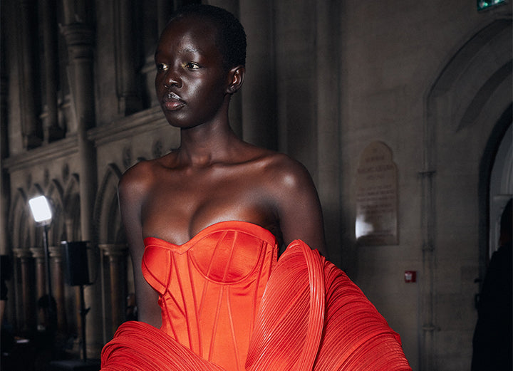 A careful observation of the flame reveals colours that weave the collection together. Black is a metaphor for the absolute nothingness of being. Agni orange reflects the rising of a flame. Sand represents light, reflection. The ether blue is indicative of the infinity that ascension brings.