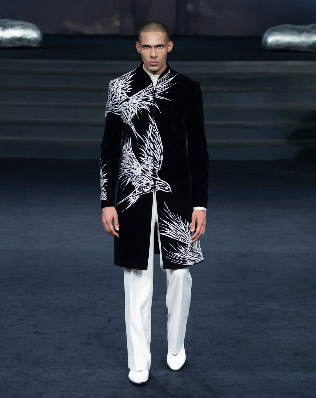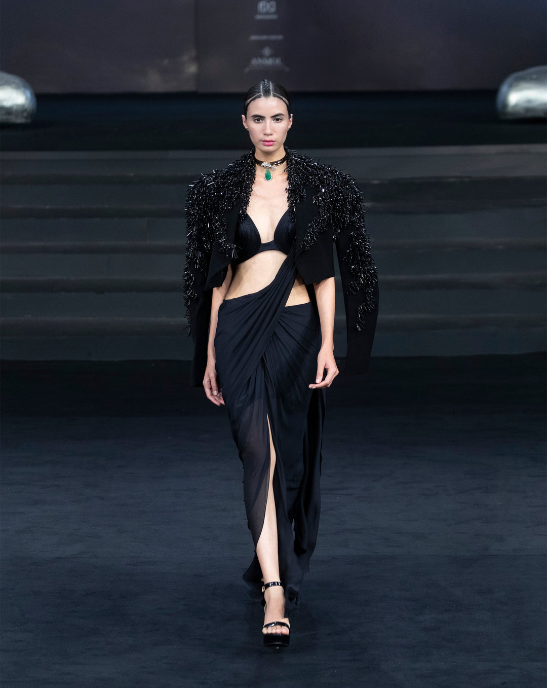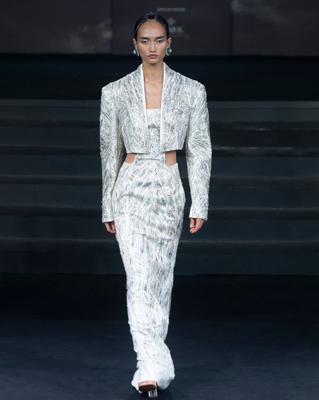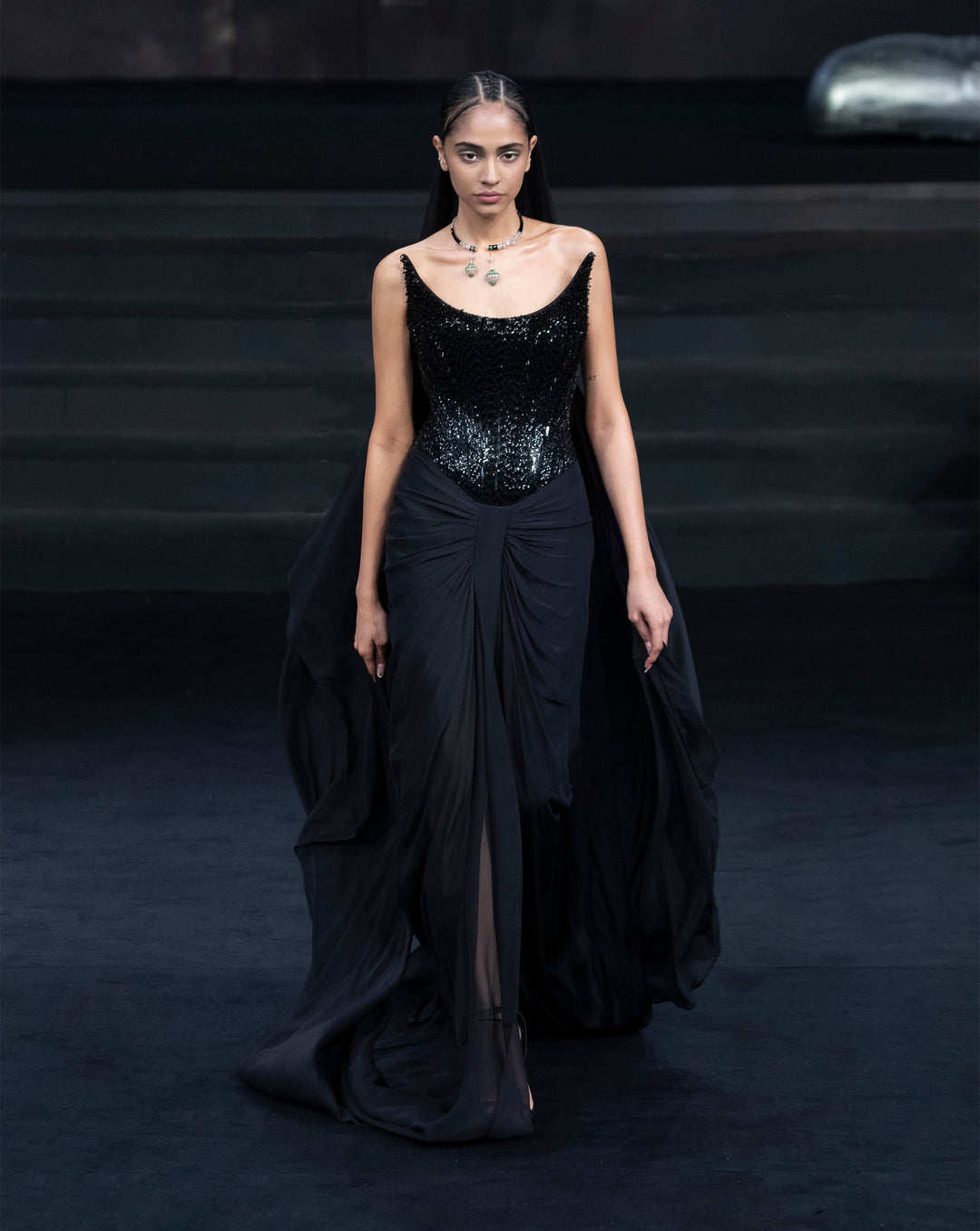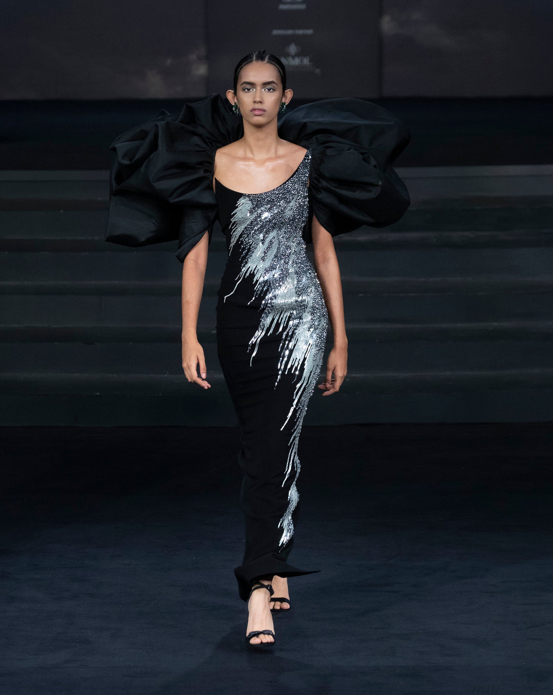Arunodaya signifies the early dawn, derived from the Sanskrit words "Arun," meaning dawn, and "Udaya," meaning riser daybreak. This captivating phenomenon, where the first light of day breaks the darkness, is the essence of Gaurav Gupta's India couture collection. Arunodaya embodies the mystical transformation of night into day, symbolising hope, renewal, and the infinite possibilities that come with each new beginning.