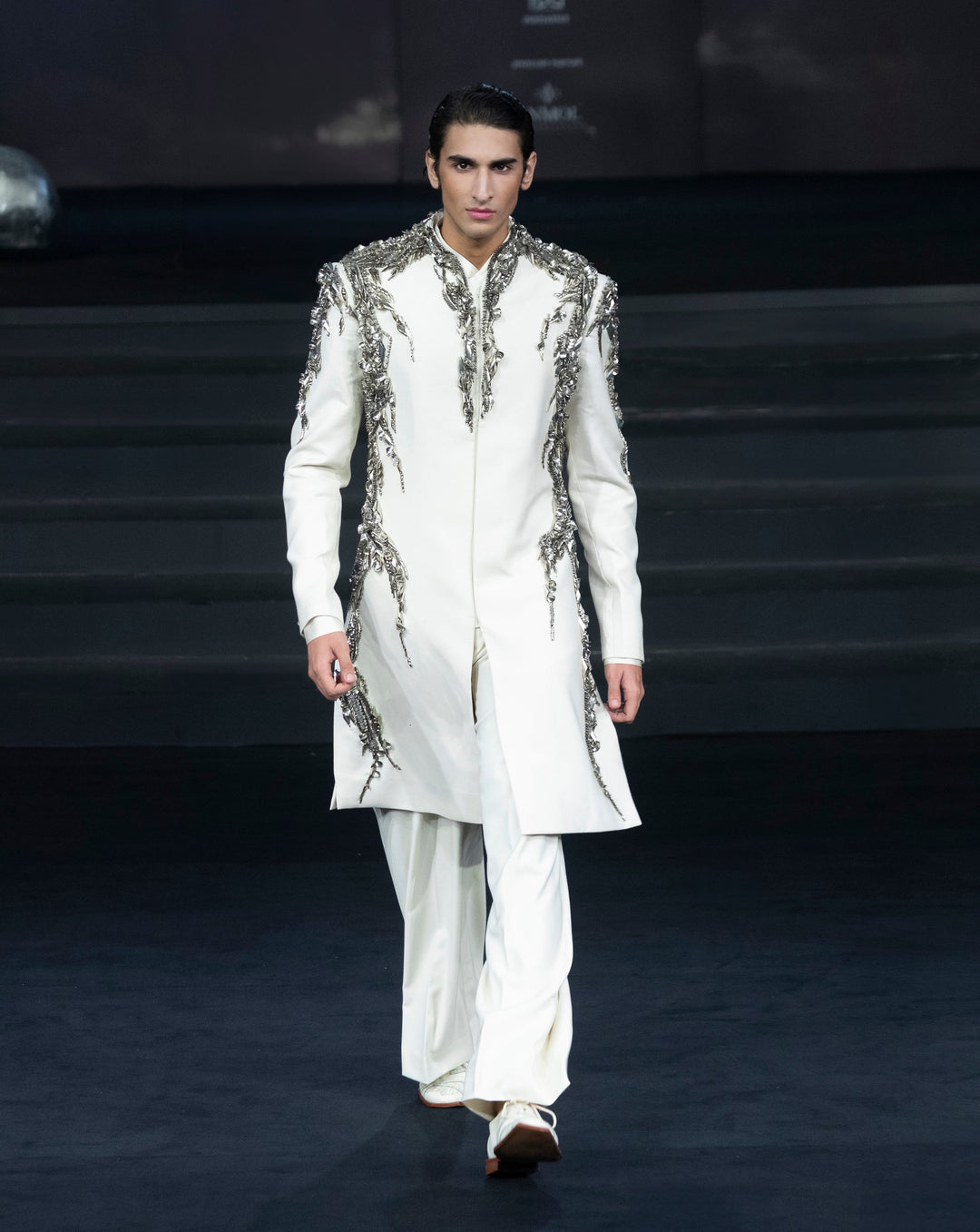 Showstopper Vedang Raina said, "Gaurav's visionary artistry is unparalleled. His ability to transform fabric into wearable art is extraordinary. I am thrilled to be a part of his vision and this collection”