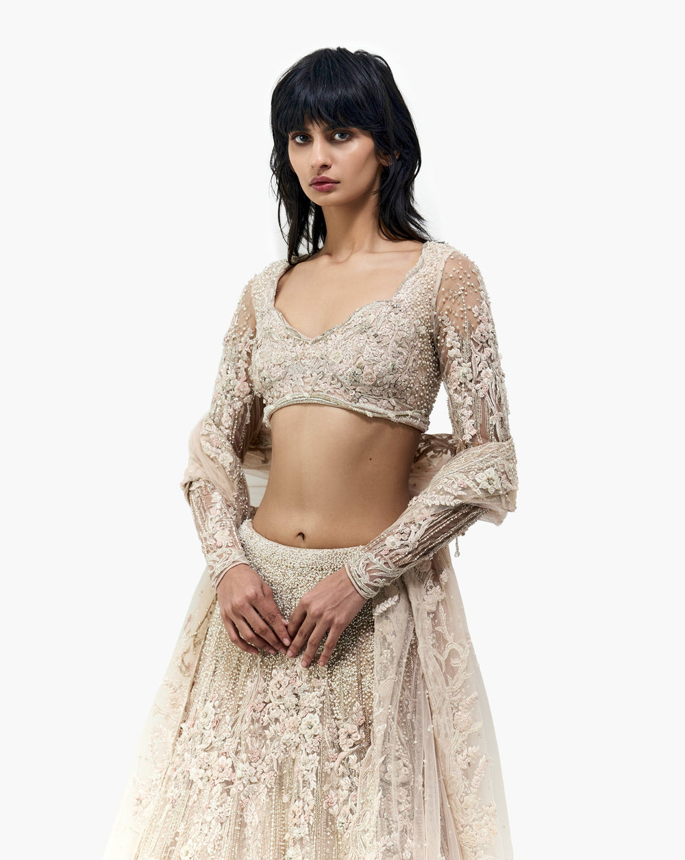 Intricately handcrafted couture lehengas for the modern Indian bride on her wedding, cocktail and reception.