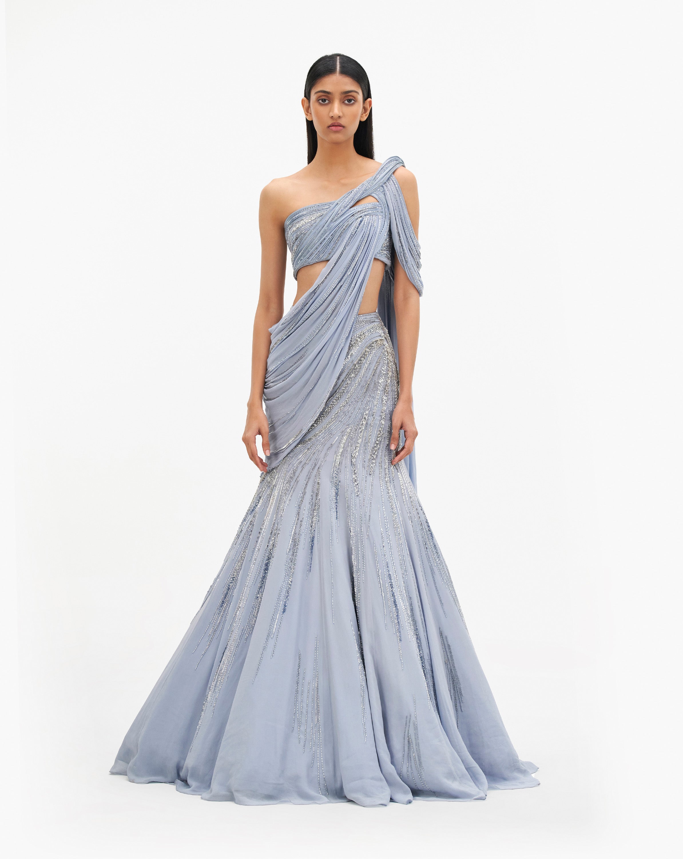 Intricately handcrafted couture lehengas and saree gowns for the Indian bridesmaid for weddings, cocktails and reception.