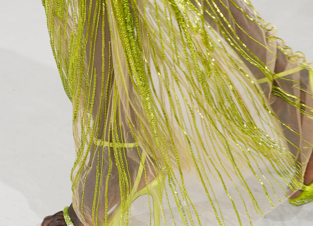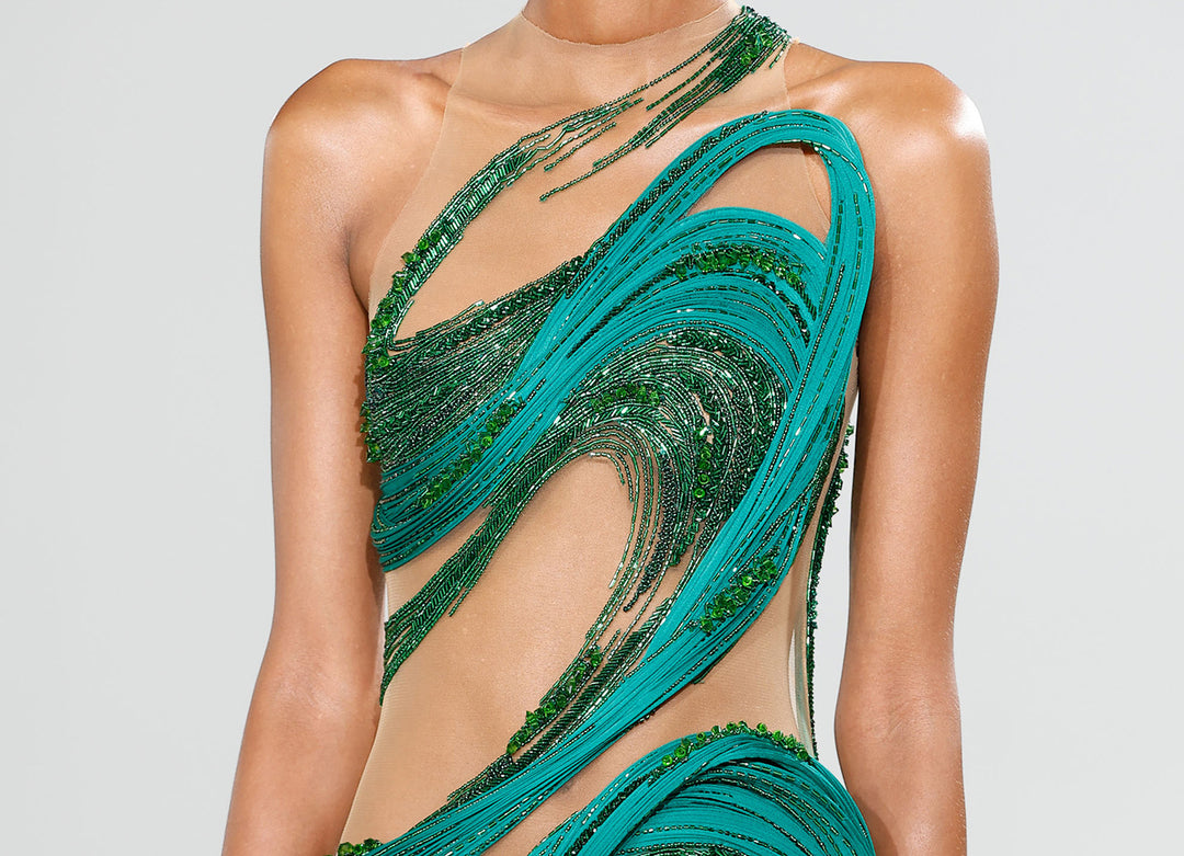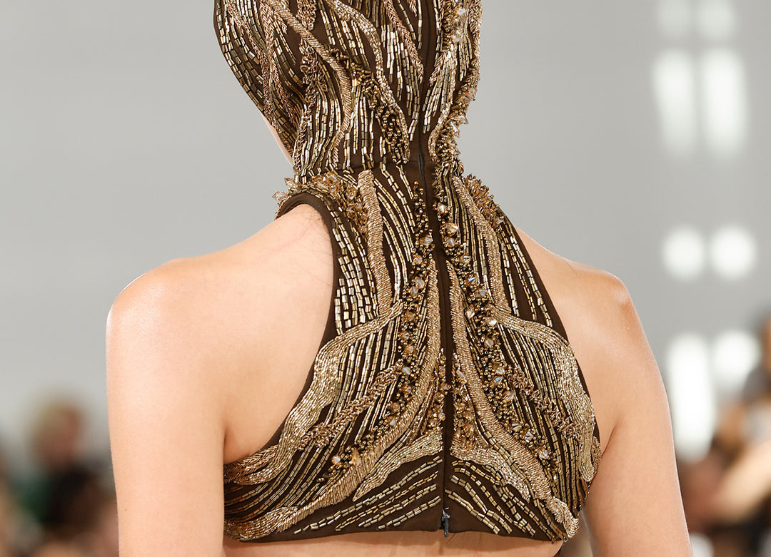 Overflowing taffetas, chiffon, multitudes of glass bugle beads, crystals piled with traditional Indian embroidery techniques like zardozi, nakshi and dabka – all a joyous tribute to growth and the resilience of being alive.
