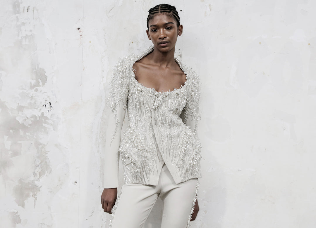It is in the pristine nothingness where all possibilities of metamorphosis swim, this collection takes birth. It floats through the cosmic cycle of elements from where amoeba to gods to humans come into being and in time are absorbed back into the supreme reality, the Brahman. The starkness of the first light is imagined in the absolute whites submerged in lustrous, iridescent pearls. A reminder of the blank canvas, eager to begin. And when life truly bursts forth, it’s with unstoppable fluorescence. A dance of light and resilience just like the chrysalis burning to bloom.