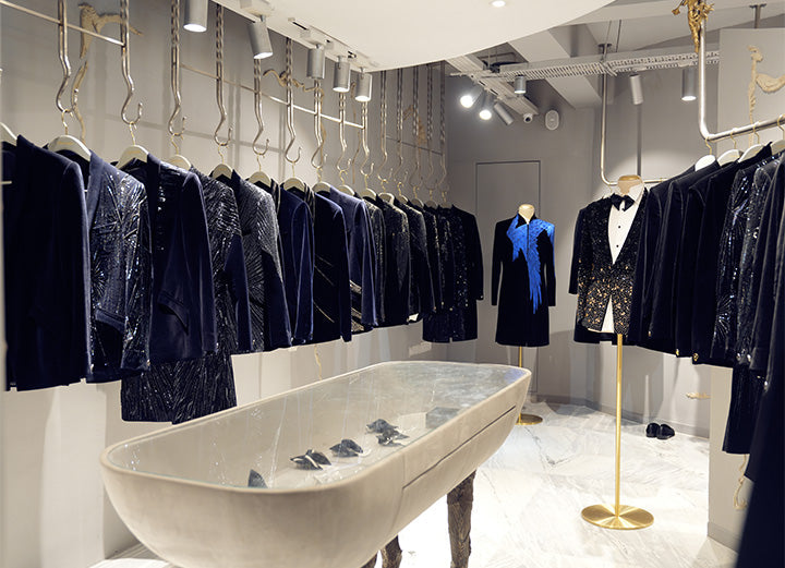 The designer has also developed signature objects d’art, monotonal furnishing, carved wooden furniture, suspended art-nouveau mirrors and handmade brass murals to further enhance the inherent cosmic element of the interiors. The space has been brought to life with three-concept rooms; a couture-cum-bridal salon and a demi-couture section for women along with a dedicated space for formal and occasion wear for grooms under Gaurav Gupta Man.
