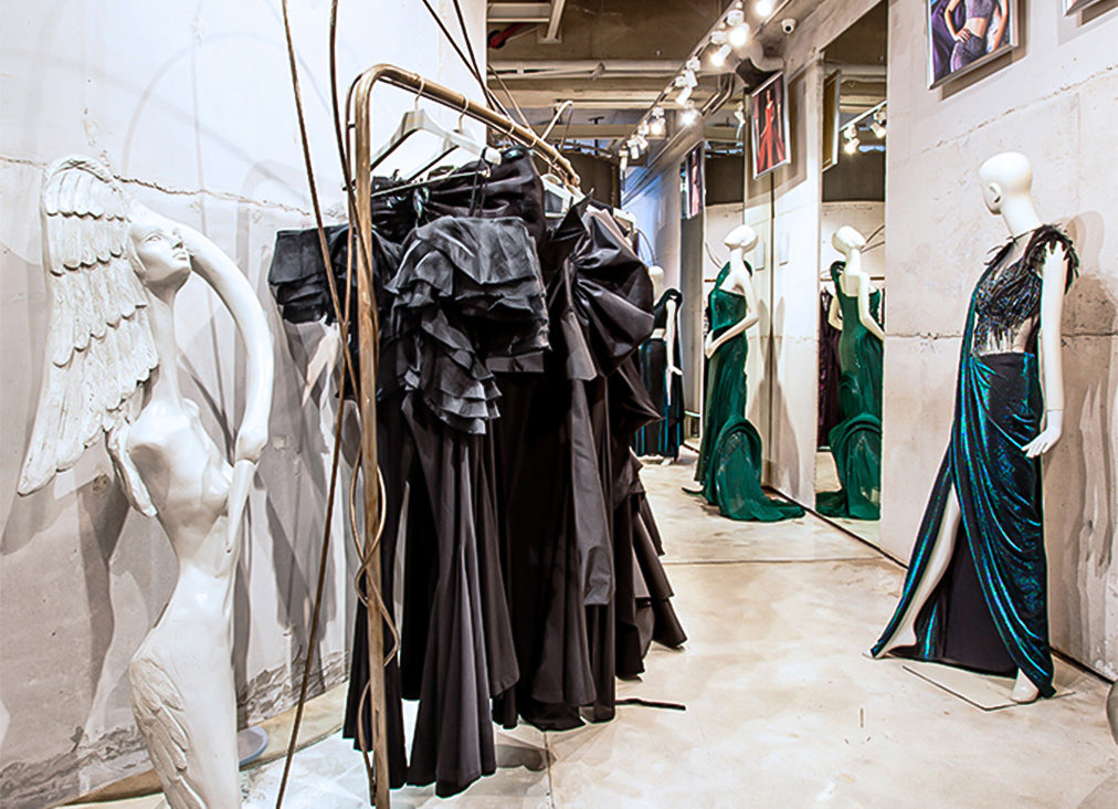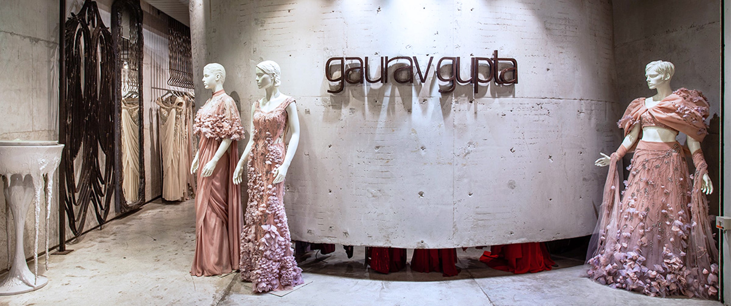 The store has been entirely crafted by hand. The mirrors are cast using fabric to create an illusion of melting. Surrealist pieces, some are suspended, and others floor-mounted with cast mild steel bird sculptures on either side. The drama is heightened by the sculpted pieces of furniture and artefacts crafted in mild steel and quilted leather, that appear almost carelessly strewn in the space. This store was a finalist at The INSIDE Awards, Singapore.