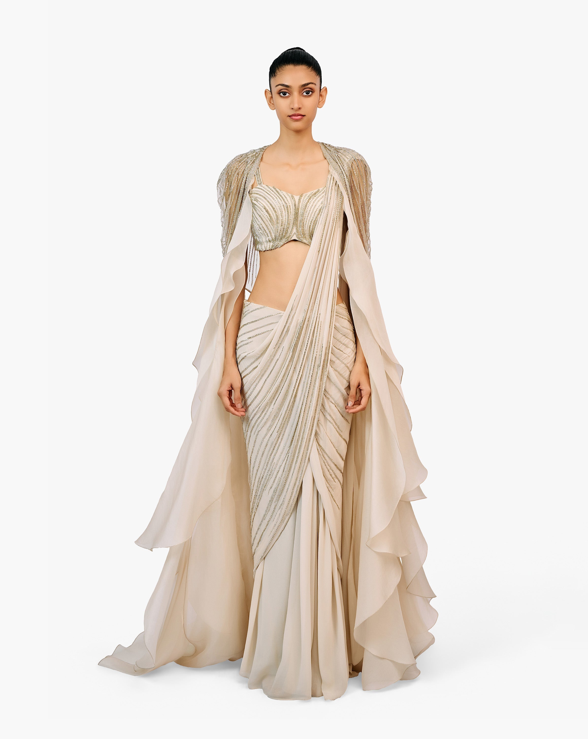 Disclaimer: The garment details including but not limited to specifications have been portrayed as accurately as possible. Each garment is carefully handcrafted by artisans, and hence the beauty and nature of the garment is that it is one of its kind. Slight difference in sculpting, drape, color, or embroidery are characteristics of a hand made garment and the design process.